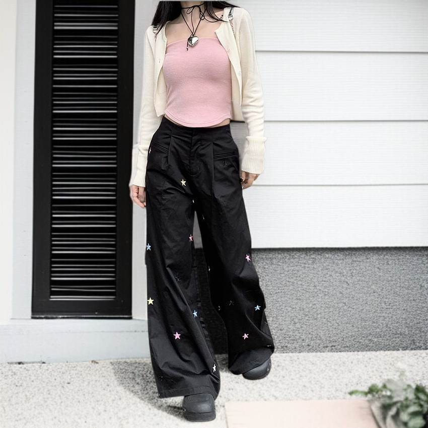 ● 트렌디한 와이드 핏 디자인으로 체형 커버와 동시에 스타일리시한 캐주얼 룩을 완성할 수 있습니다. ● 별 자수 디테일이 포인트가 되어 심플한 상의와 매치해도 독특한 개성을 연출할 수 있습니다. ● 롱 팬츠 스타일로 다리가 길어 보이는 효과와 슬림한 실루엣을 동시에 경험할 수 있습니다. ● 부드러운 소재와 편안한 착용감으로 데일리룩, 캠퍼스룩, 여행 등 다양한 활동에 적합합니다. ● 허리 밴딩 처리로 자유로운 사이즈 조절이 가능해 누구나 부담 없이 입을 수 있습니다.