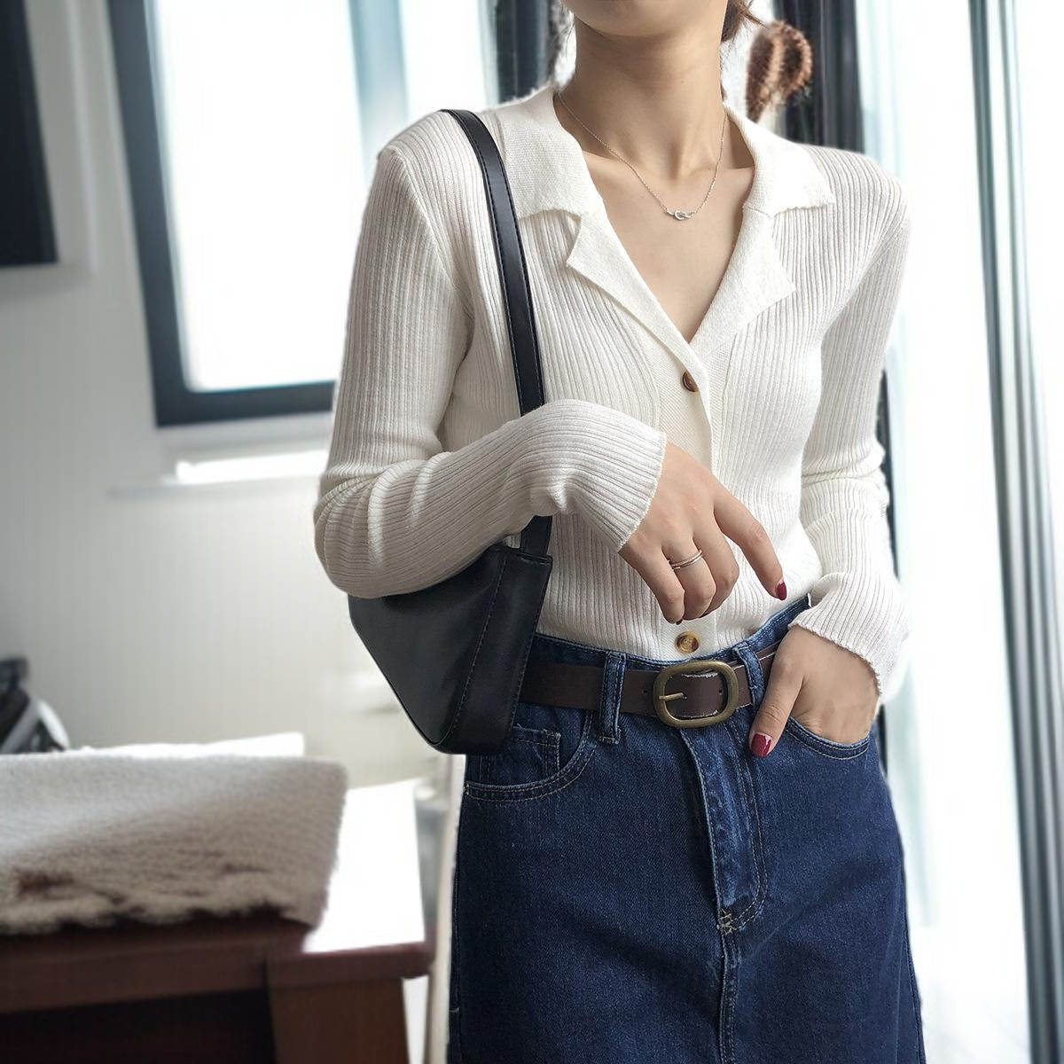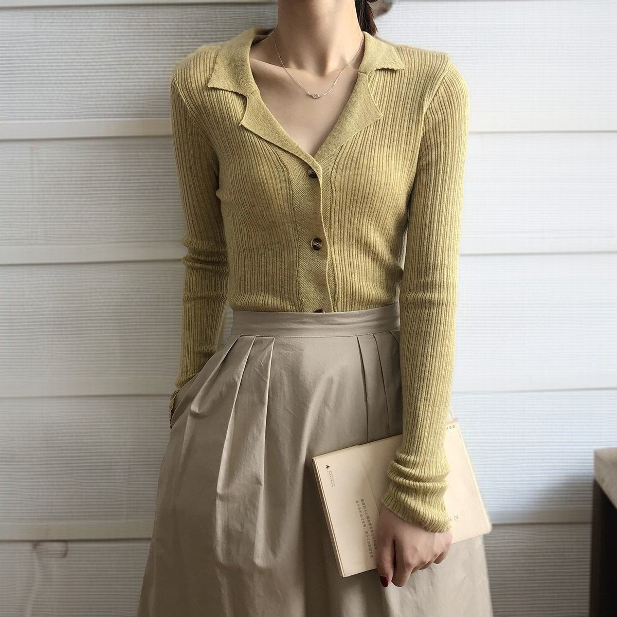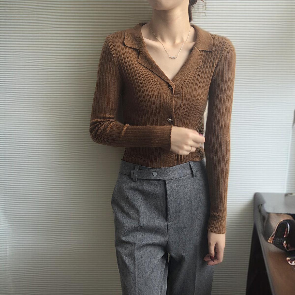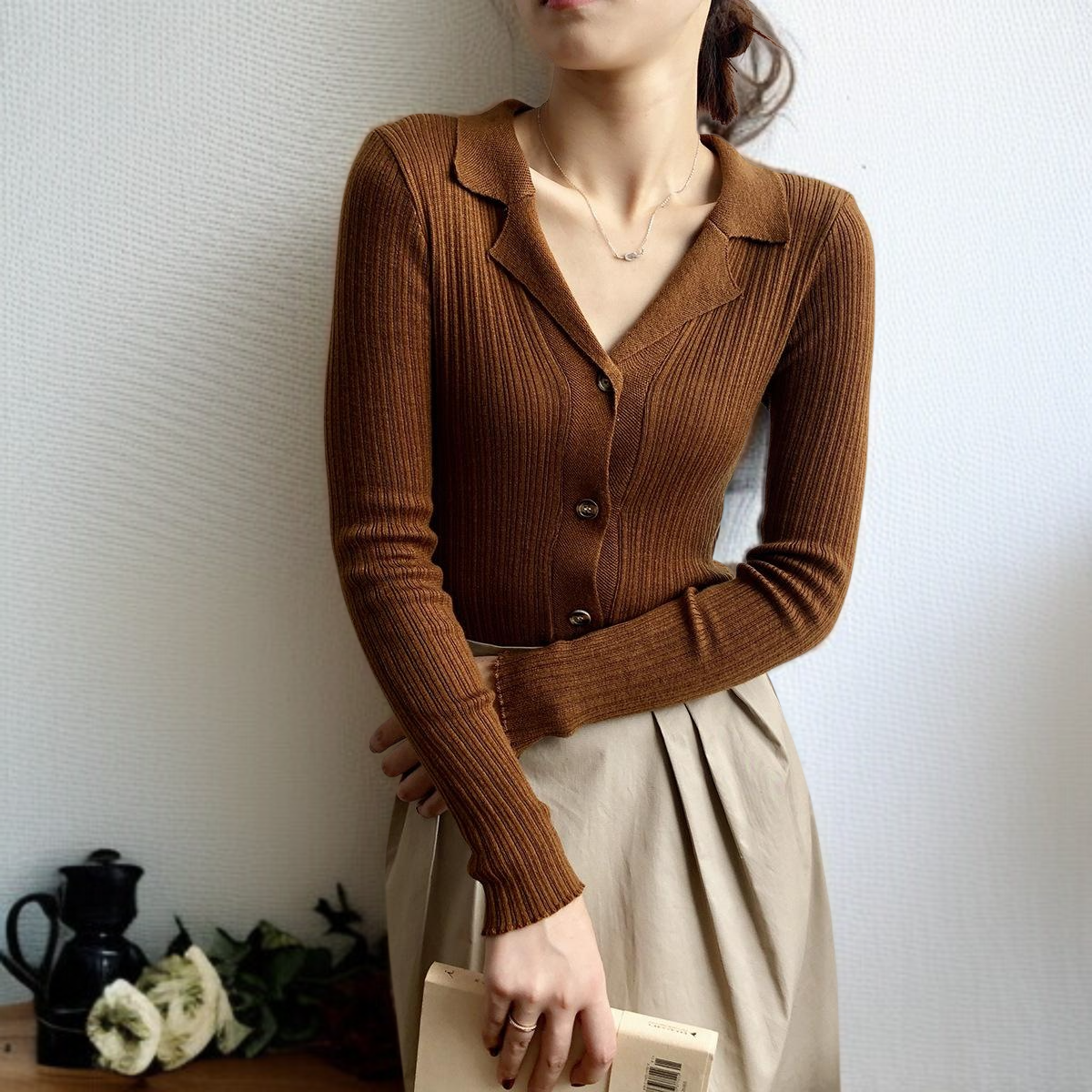 카디건 여자 카디건 슬림 솔리드 니트 스웨터 긴팔 이너 니트 날씬해 보이는 니트 니트 정장넥 긴팔 레깅스