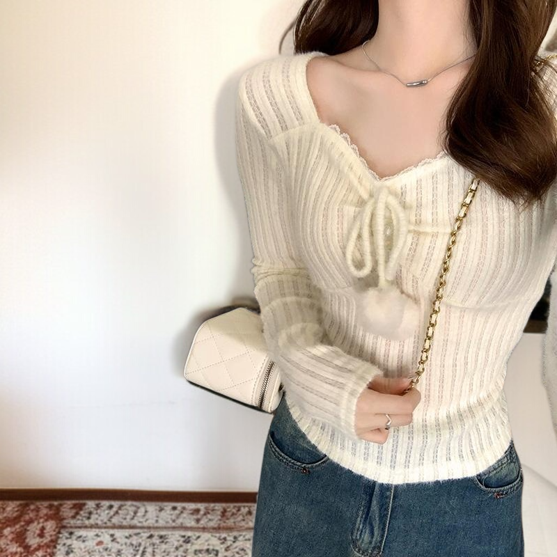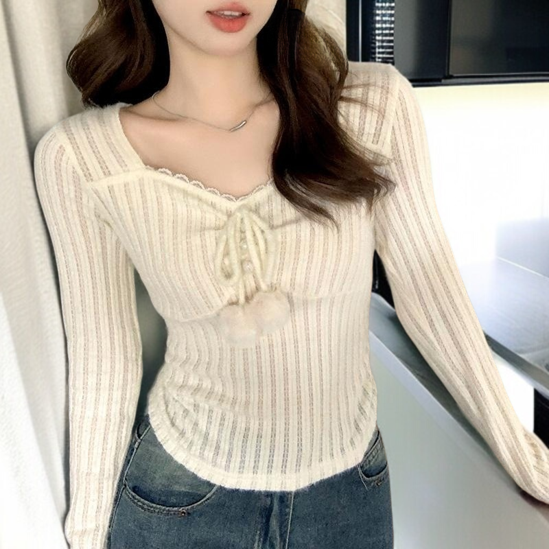 학식 여자 숙녀 니트 긴 소매 쇄골 트랜드 벨트 내탑 기본을 두다 짧은 저고리 색다르다 니트